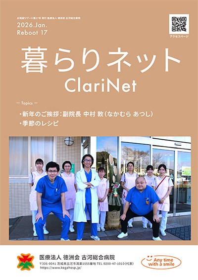 トップ > 古河総合病院について > 広報誌 広報誌 2026年1月号 2025年12月号 2025年10月号 2025年3月号 2025年1月号 2024年5月号 2024年4月号 2023年9月号 2023年5月号 2023年3月号 2022年12月号 2022年8月号 2022年1月号 2021年9月号 2021年6月号
